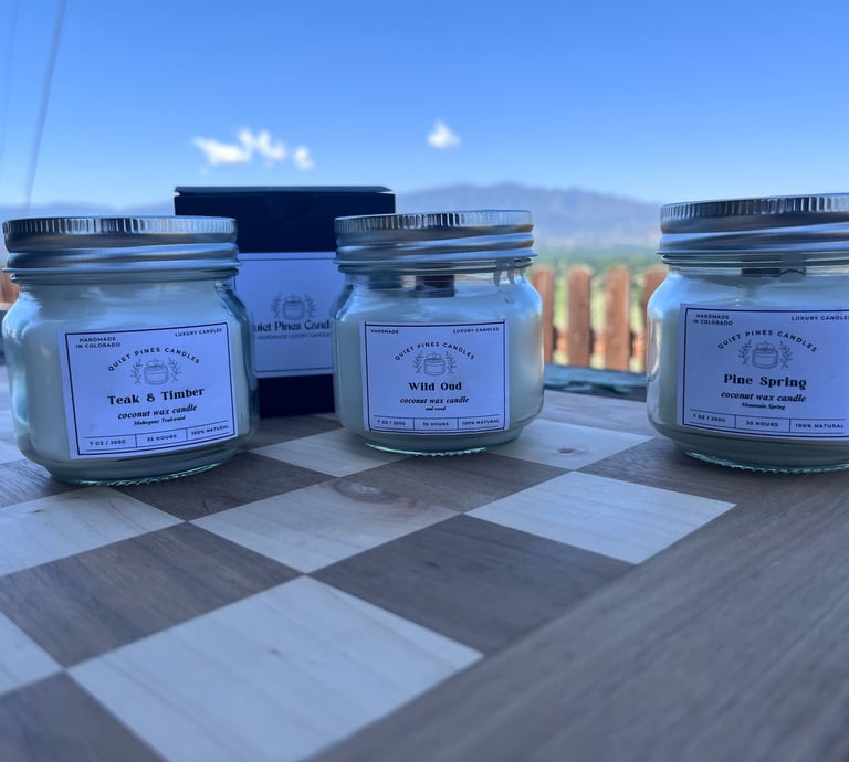 At Quiet Pines Candles, 100% natural, handmade candles that connect you to the beauty of nature, all crafted with love in the heart of Colorado.